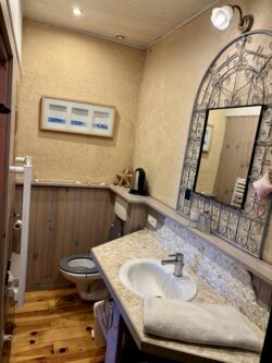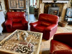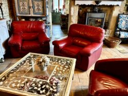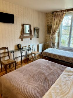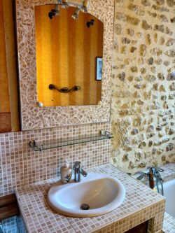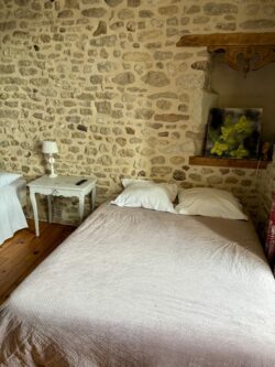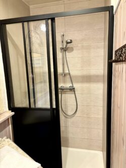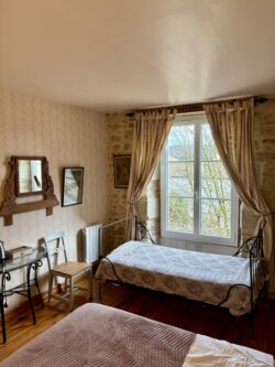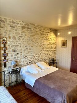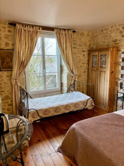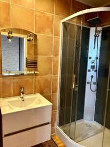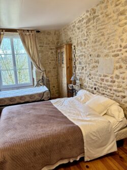 A l’étage, trois chambres, chacune avec sa salle de bain privative (douche ou baignoire selon la chambre, WC dans chaque), offrant intimité et confort pour un séjour raffiné et serein.