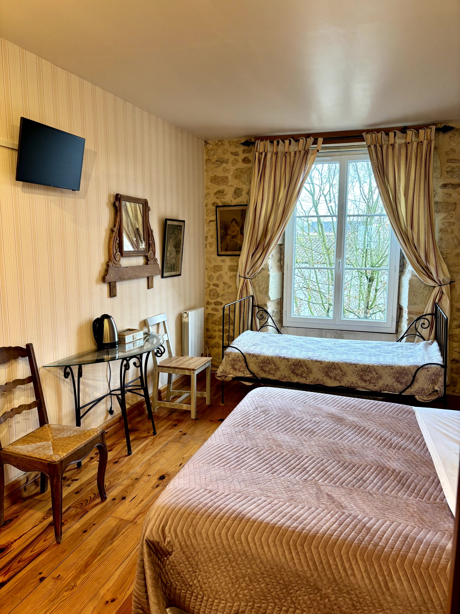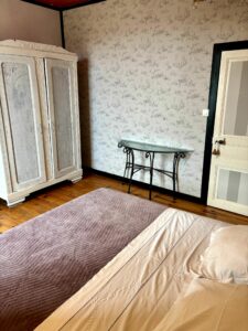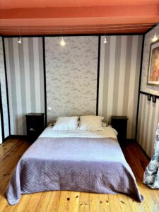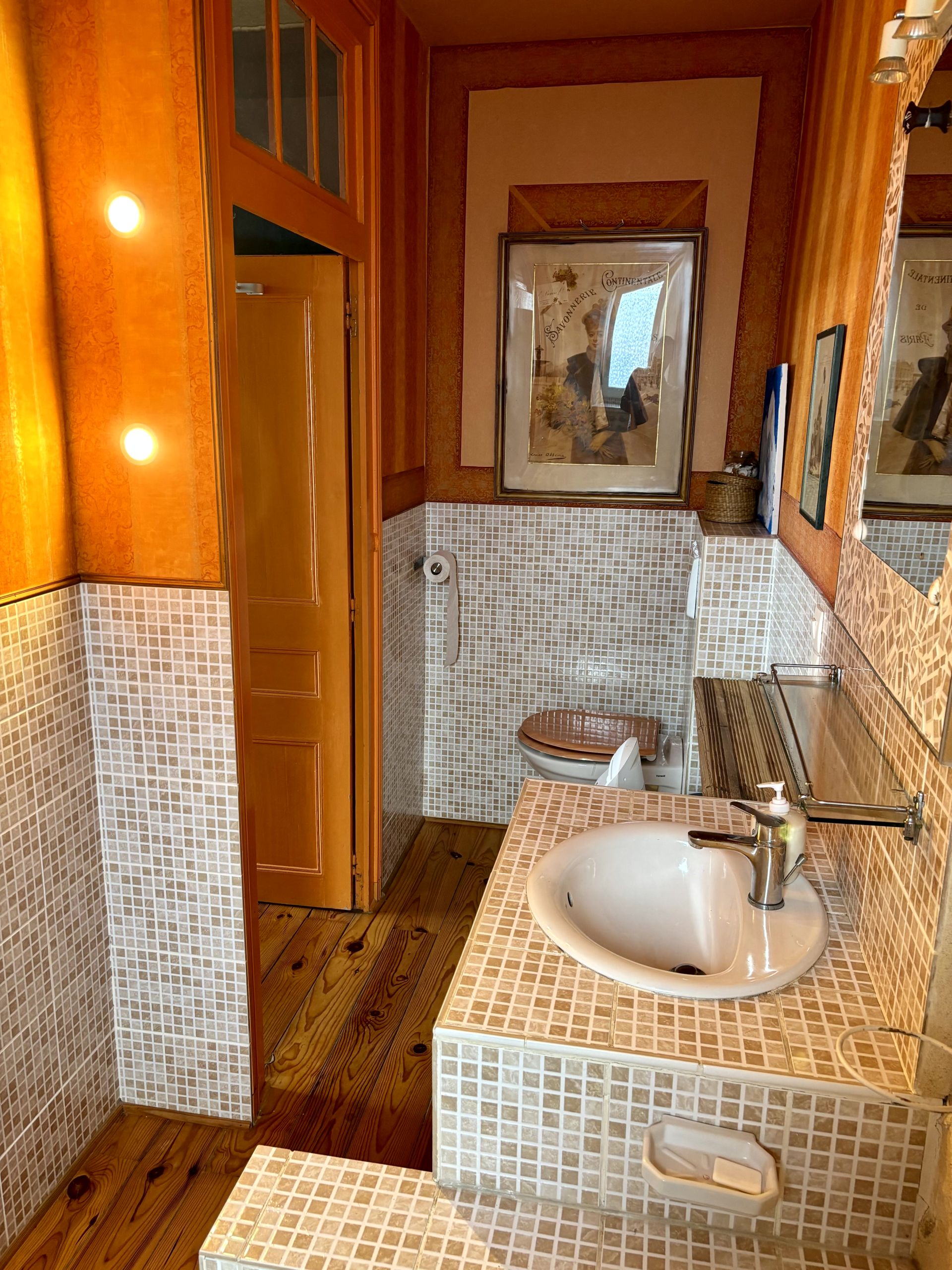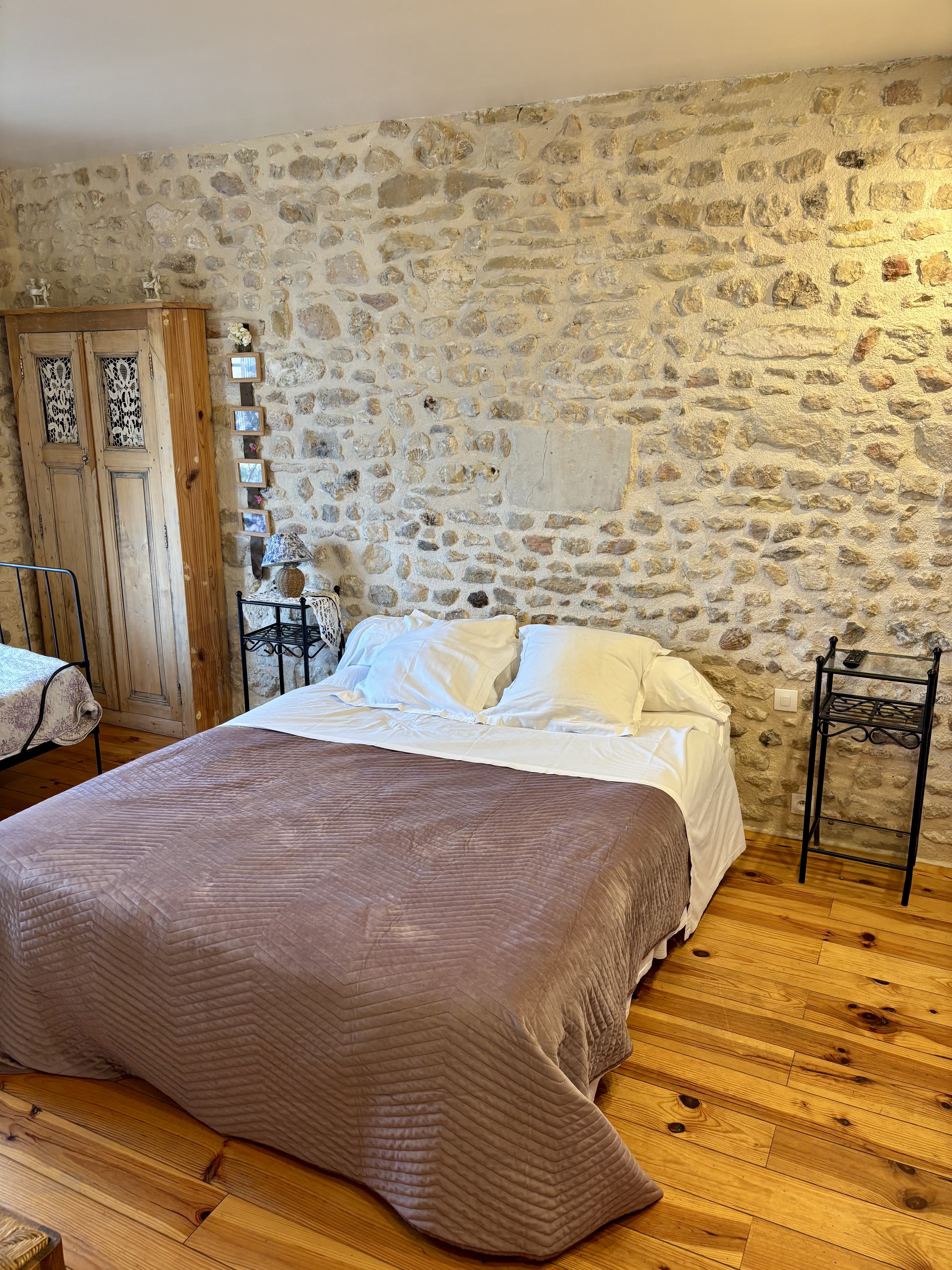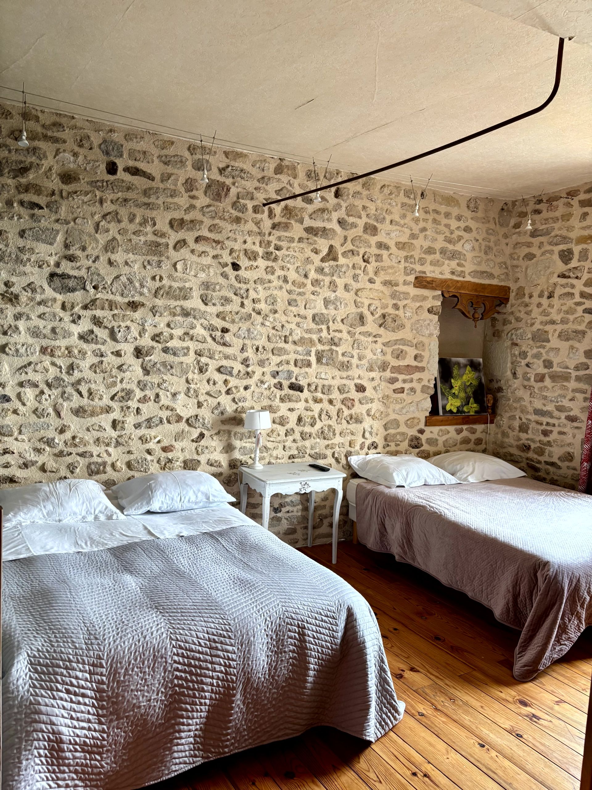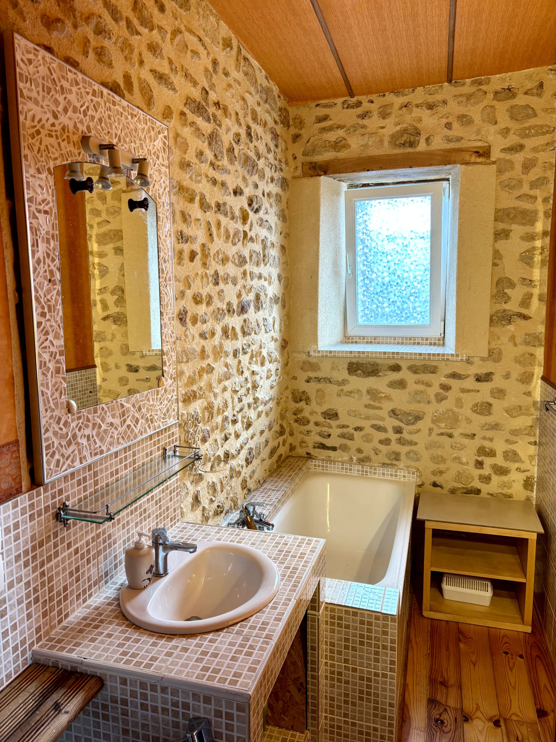 A l’étage, trois chambres, chacune avec sa salle de bain privative (douche ou baignoire selon la chambre, WC dans chaque), offrant intimité et confort pour un séjour raffiné et serein.