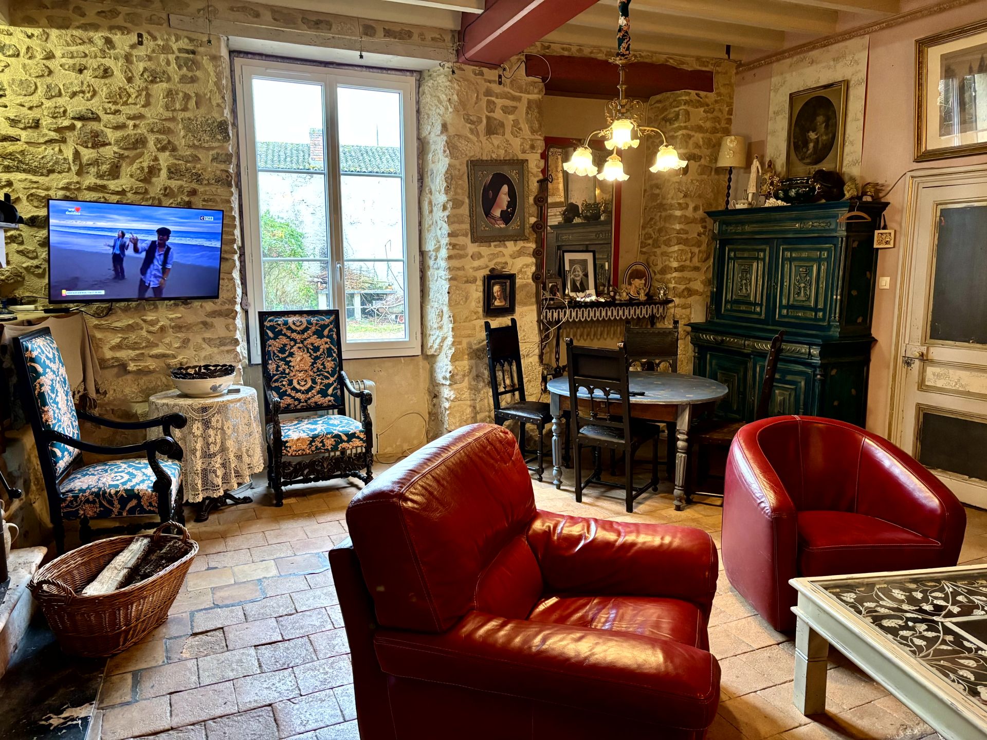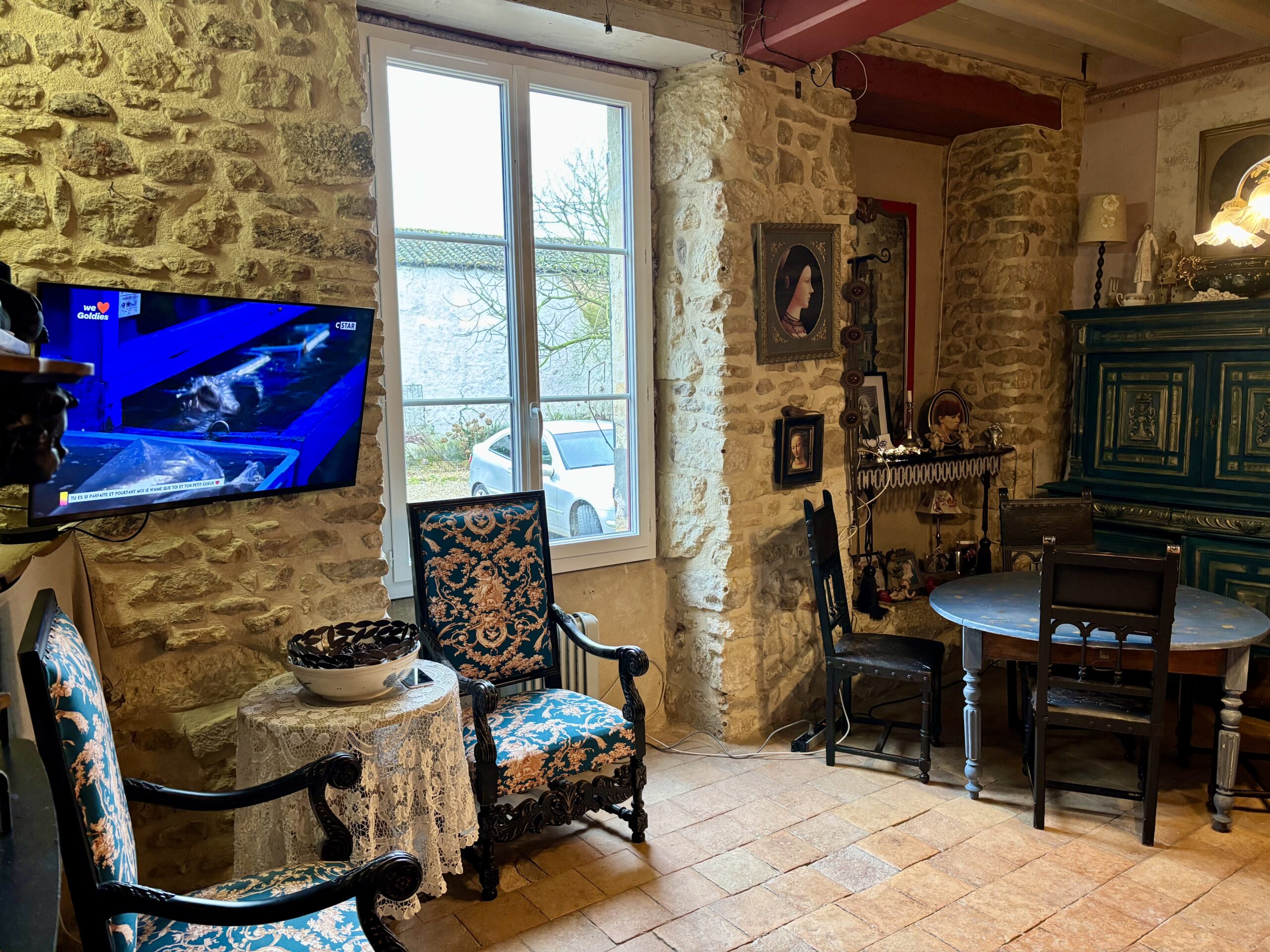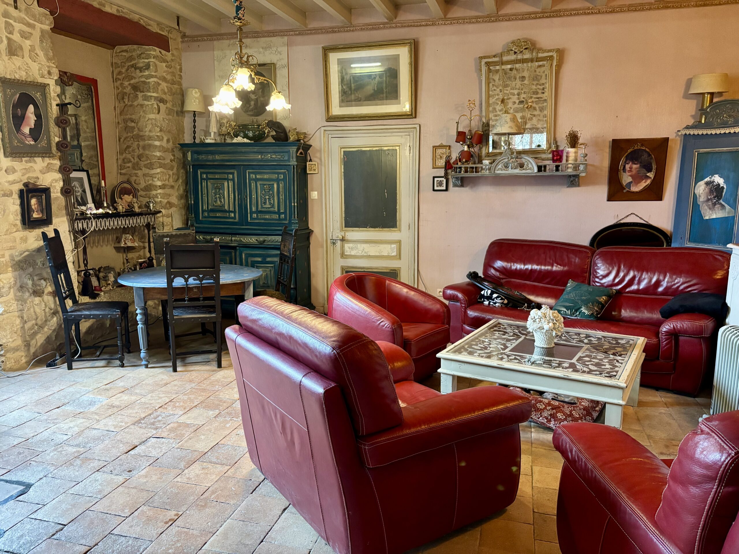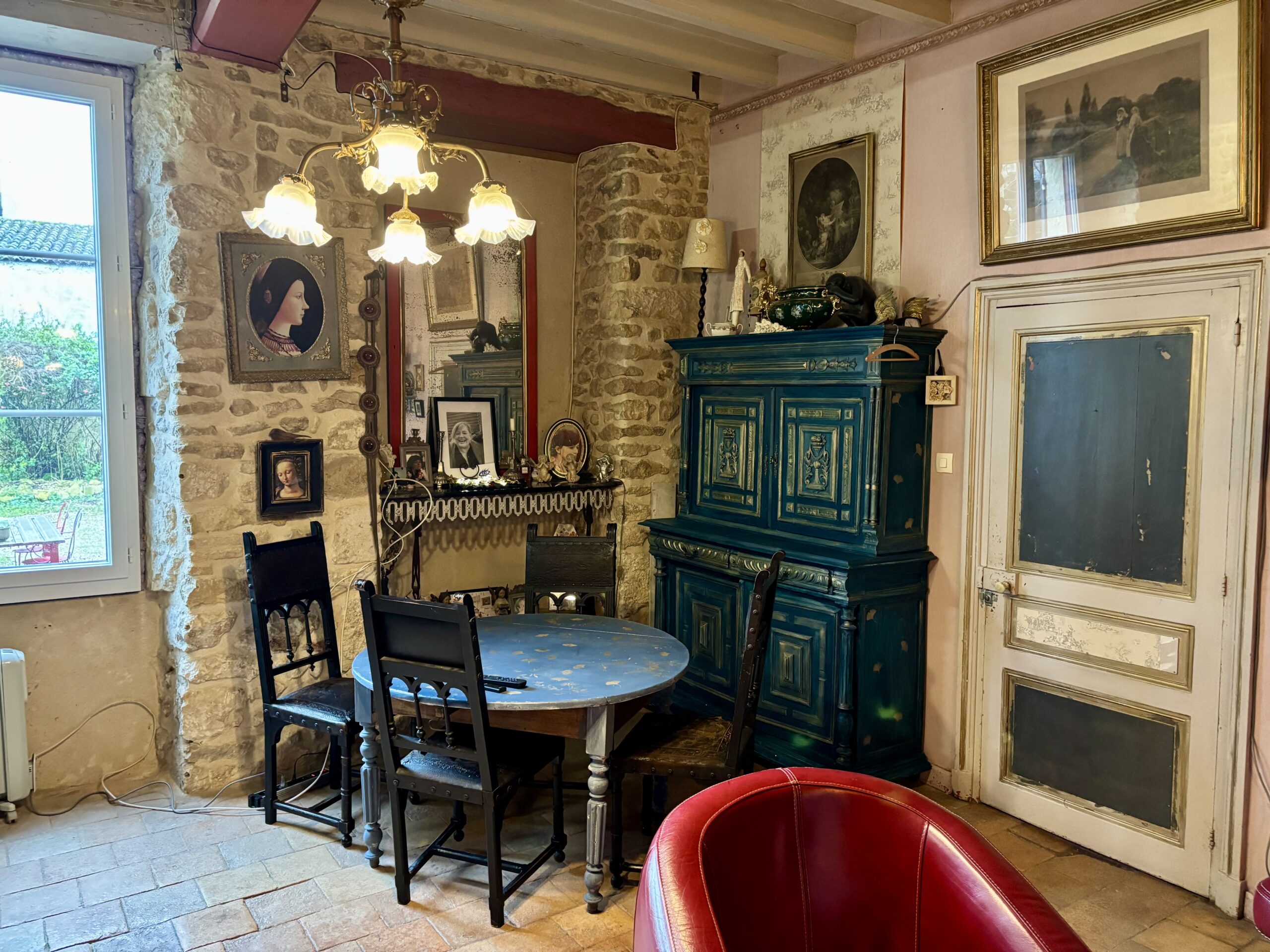 La maison dispose d’une cuisine équipée, d’un grand salon, une salle à manger, un hall d’entrée avec escalier (un WC en bas) et une buanderie (sèche linge, lave linge, fer à repasser).